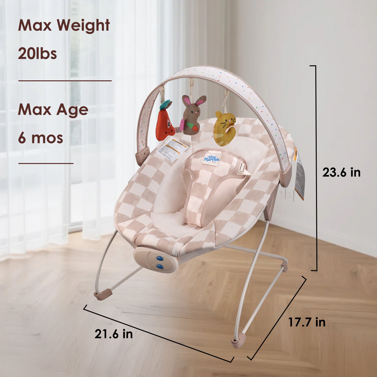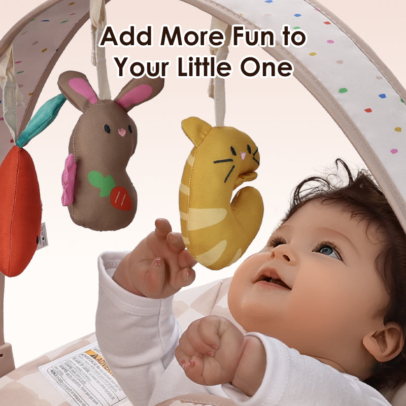 - Soothe & Stimulate: This baby bouncer delivers gentle vibration mode that mimics maternal rhythms to calm fussy babies, while 3 sensory toys (Crinkle Butterfly, Bunny Squeek Toy, and Cute Tulip) encourage sensory development and motor skills