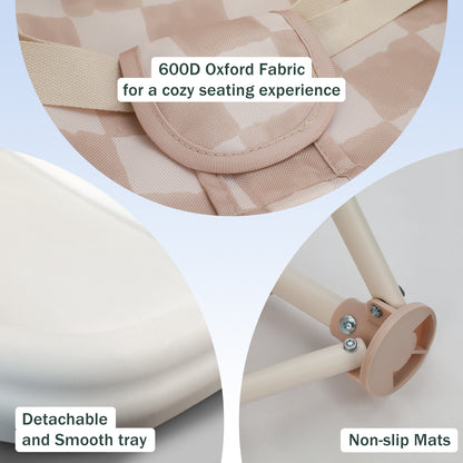 - THOUGHTFUL DESIGN FOR BABY'S COMFORT: This booster chair for dining table features a soft, durable 600D heavy Oxford fabric for a cozy seating experience, paired with a smooth,removable, rounded tray for eating or playing toys. The sturdy frame and non-slip feets keep the seat stable, even as your little one moves around, offering a safe and cozy experience