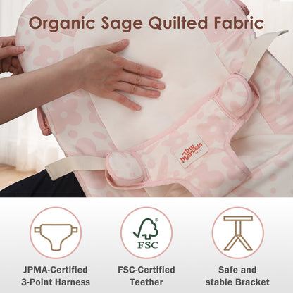●Comfortable & Easy to Clean: The breathable fabric cover promotes airflow, keeping your baby comfortable during playtime. The baby bouncy seat pad is machine washable for effortless cleaning, so it’s always ready for your baby’s next adventure.